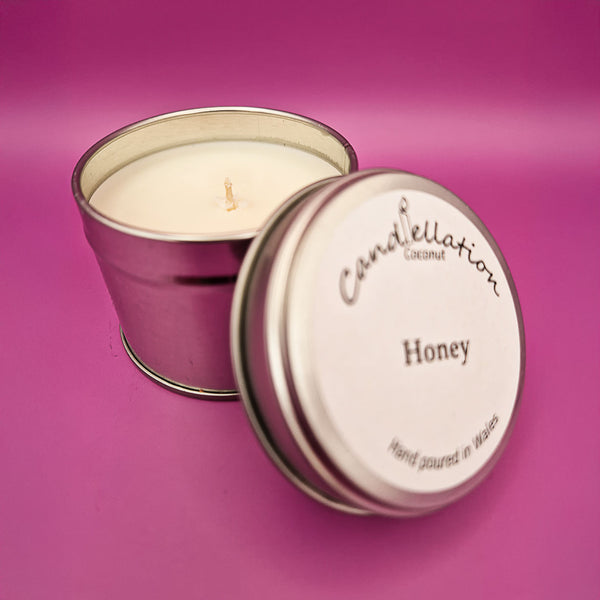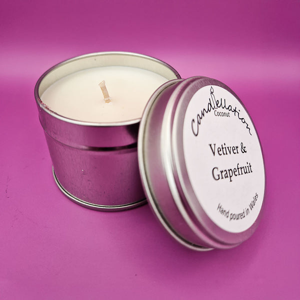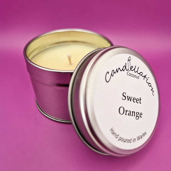 Our fragranced candles in 10cl tins.